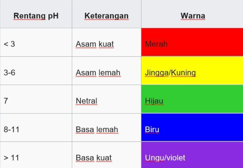 Untuk rentang pH pada indikator universal sebagai berikut:
